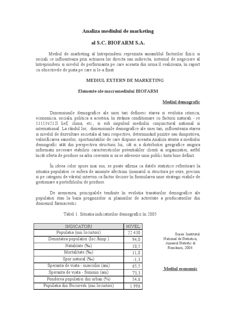 Analiza Mediului De Marketing Biofarm