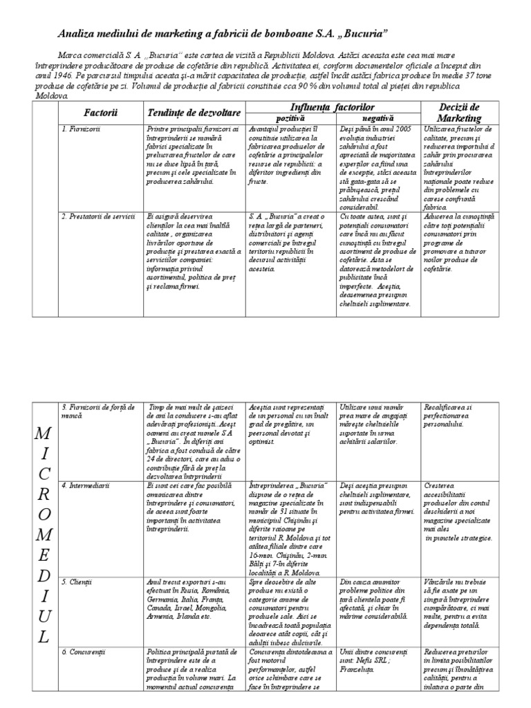 Analiza Mediului De Marketing A Fabricii De Bomboane Sa Bucuria Md