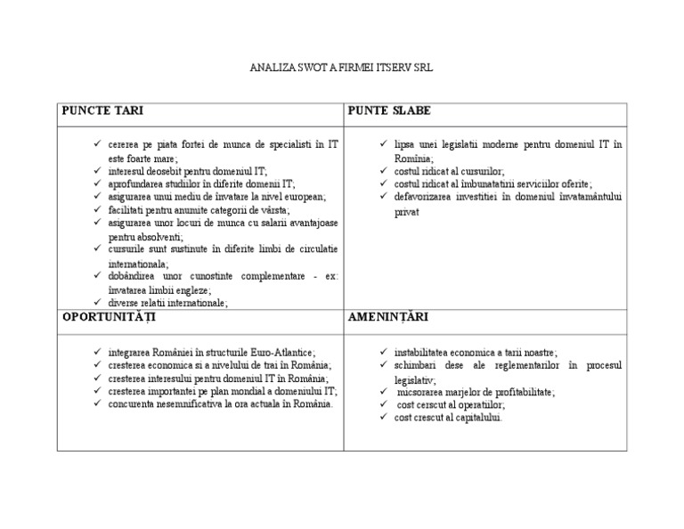 Analiza Swot A Unei Firme Exemplu