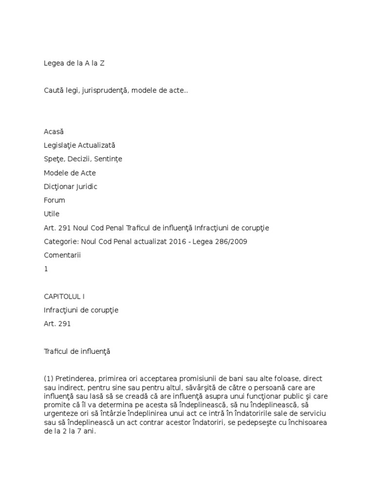Art 291 Noul Cod Penal Traficul De Influenţă Infracţiuni De Corupţie Noul Cod Penal Actualizat 2020 Legea 286 2009