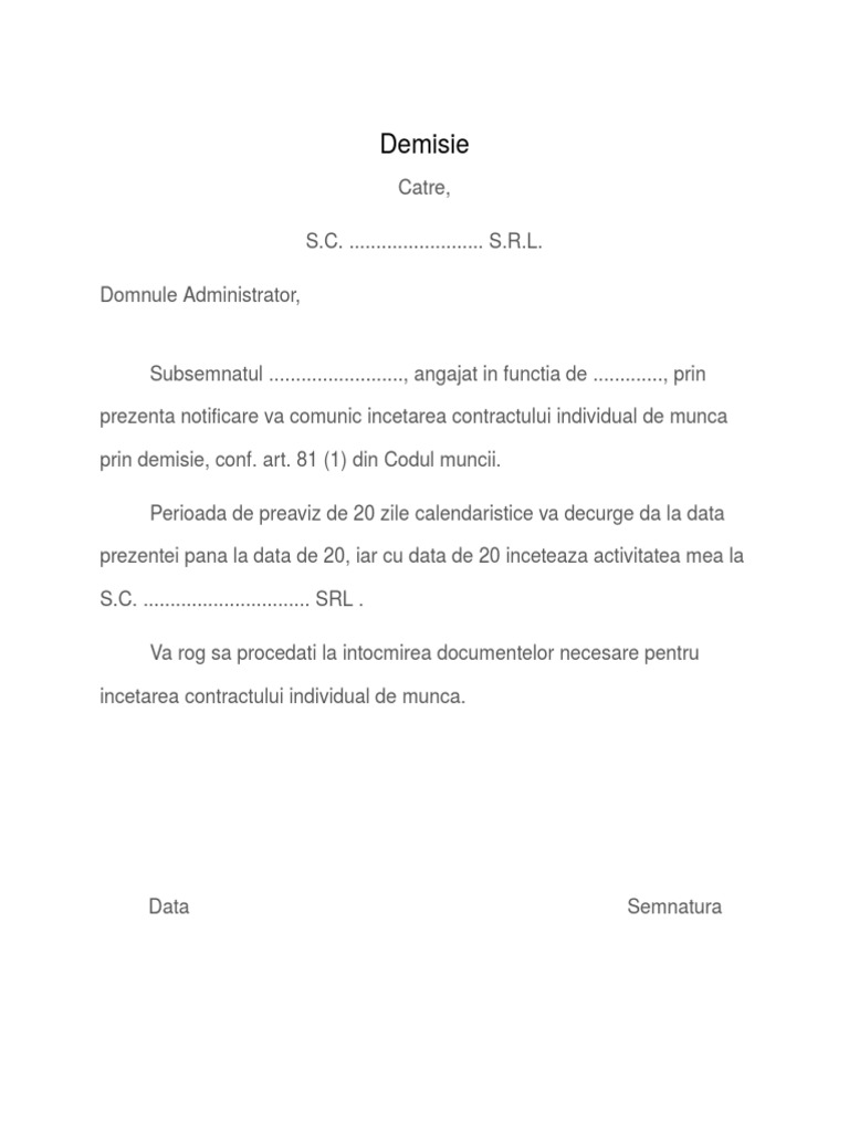 Model Notificare Demisie Pdf