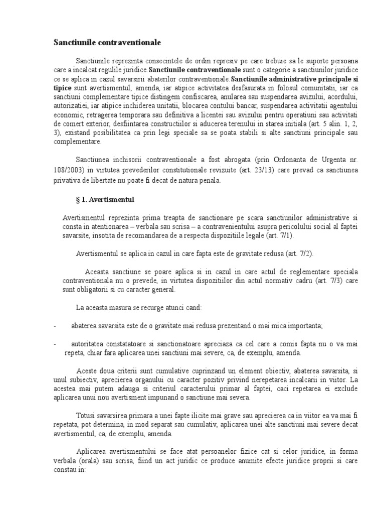 Care Sunt Sancţiunile Contravenţionale