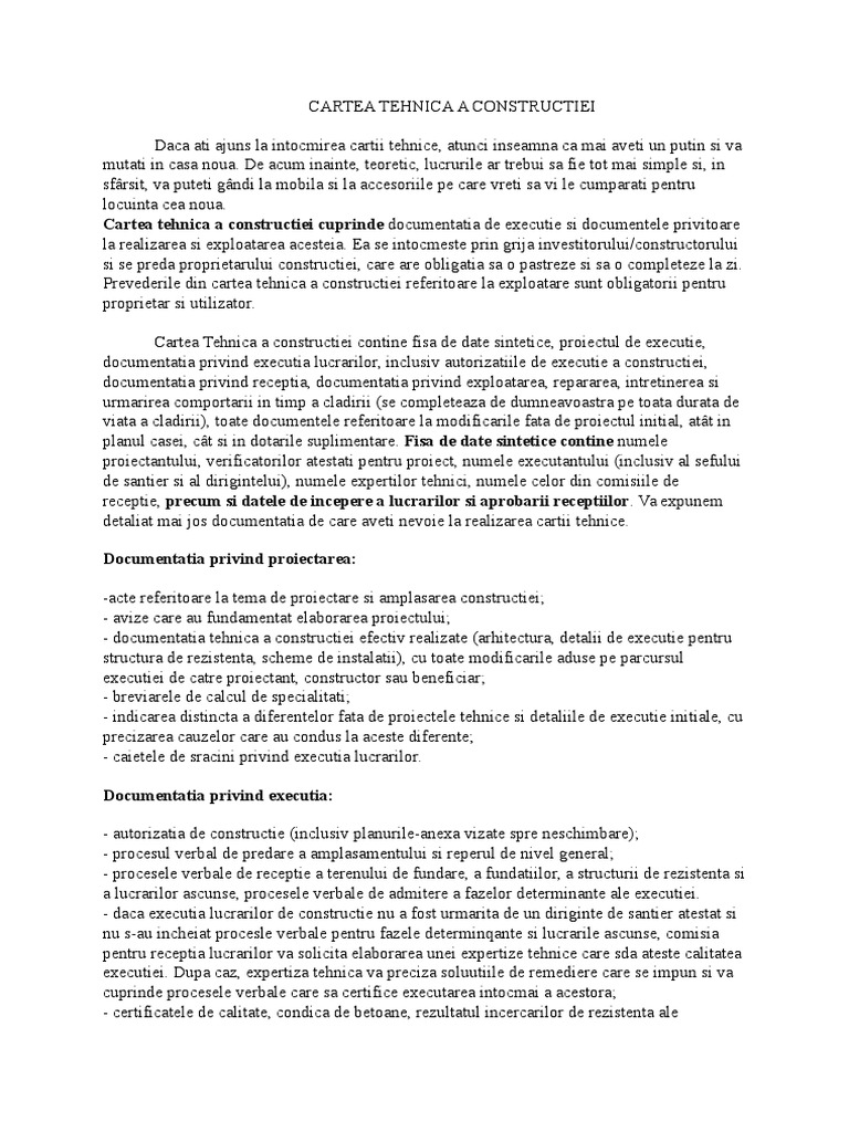 Ghid De Intocmire A Cartii Tehnice A Constructiei