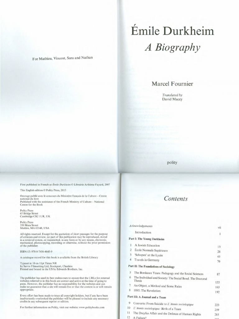 Marcel Fourier Emile Durkheim A Biography Emile Durkheim Rabbi