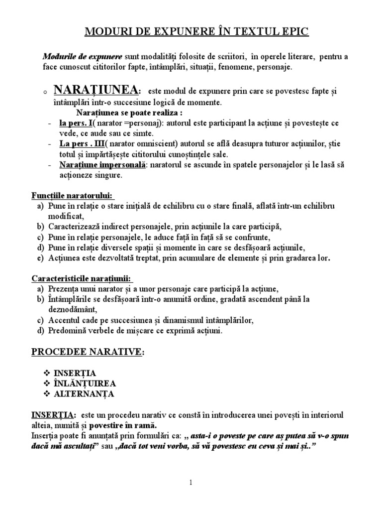 85764168 Moduri De Expunere In Textul Epic Doc