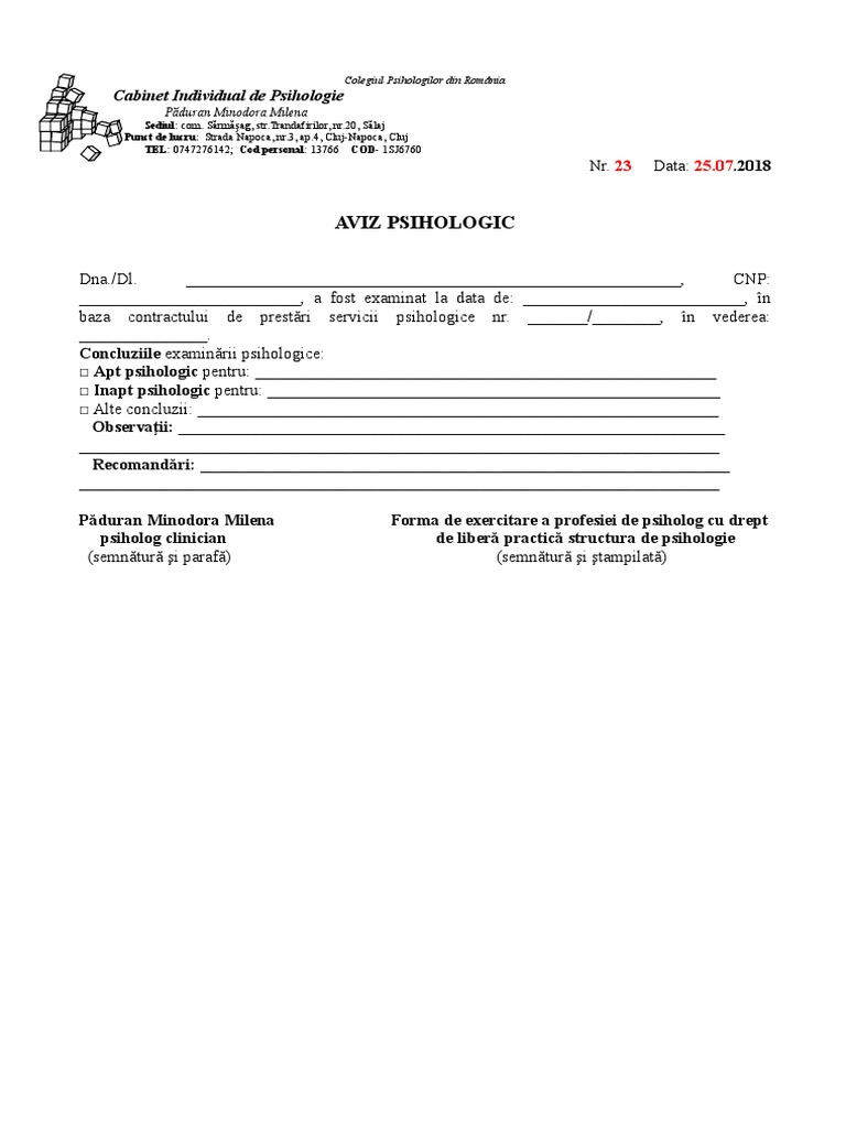 Aviz Psihologic Pentru Siguranta Transporturilor A4 50 Set X 3 Ex Carnet Emag Ro
