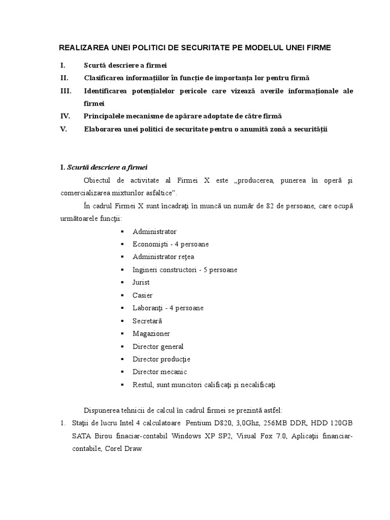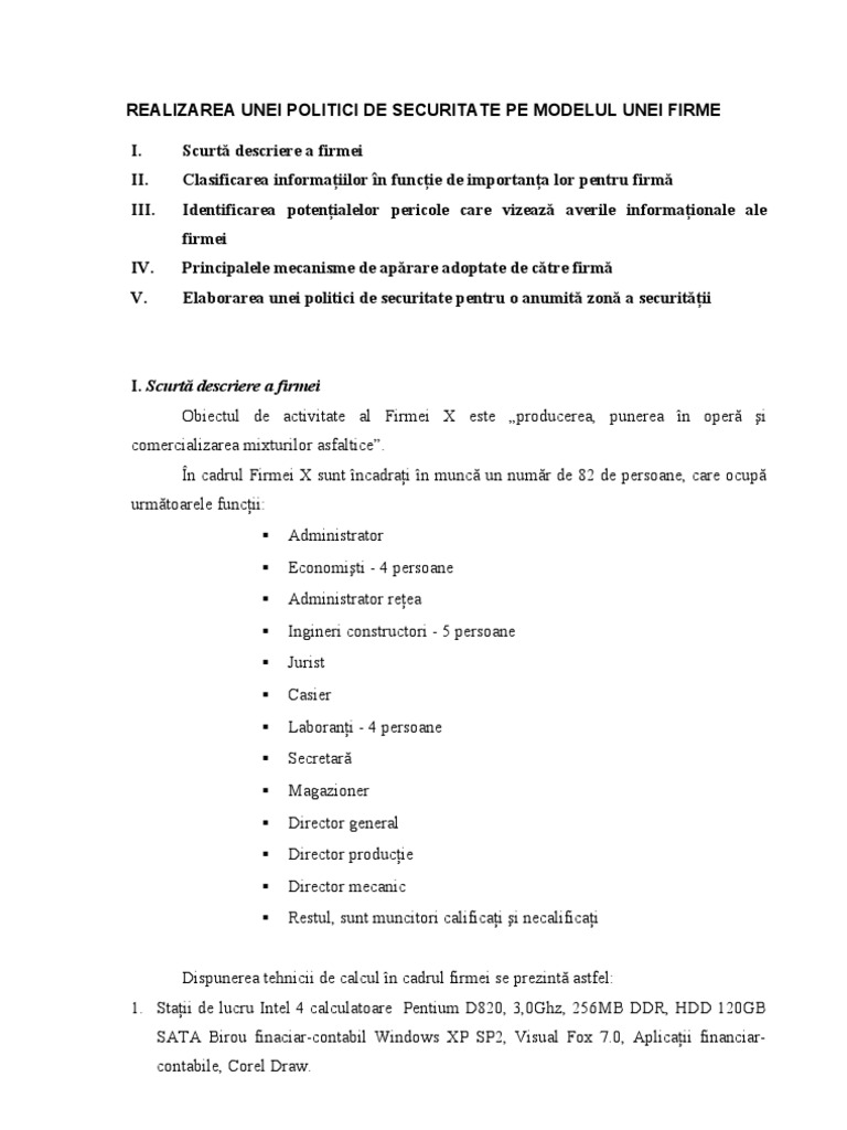 Model De Politica De Securitate A Unei Firme