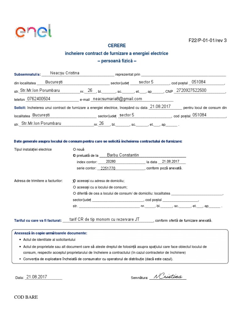 Cerere Si Chestionar Pentru Obe Inerea Avizului Tehnic De Enel